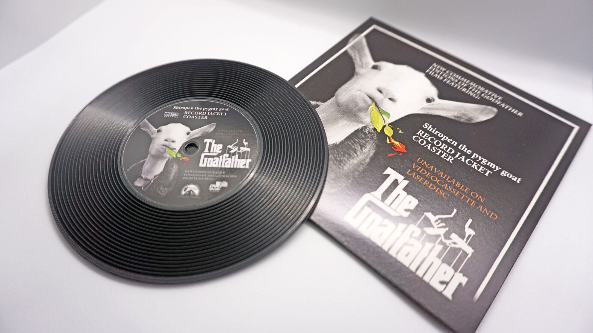 映画『ゴッドファーザー』をパロディした"ゴートファーザー"なコースターです。 レコード型になっており、使用しない時は専用のジャケットに収納してインテリアとしてもお使い頂けます。