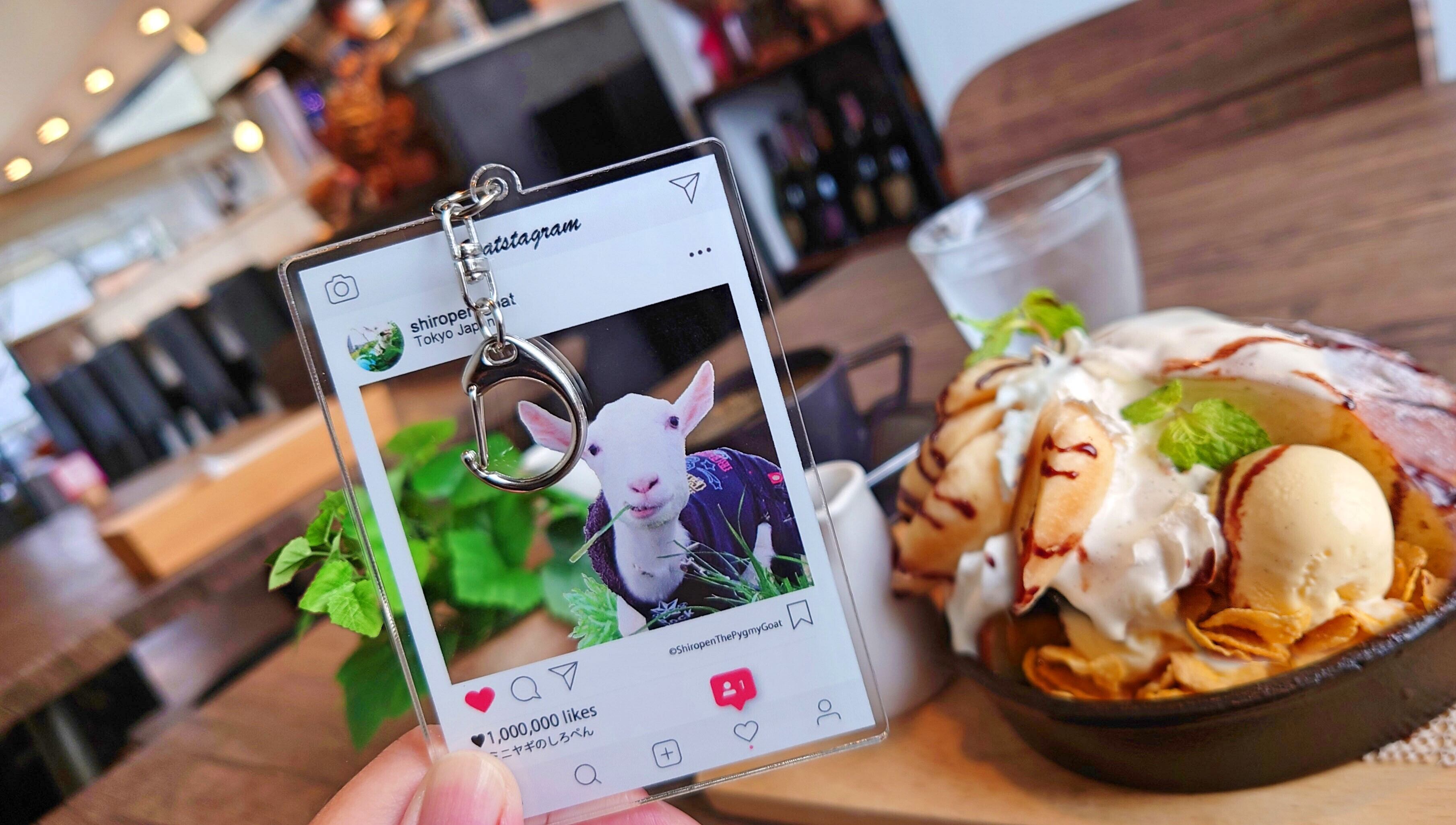 背景が透過素材仕様の、SNS風に写真が撮れるアクリルキーホルダーです。